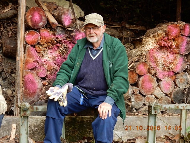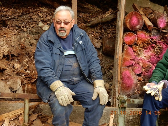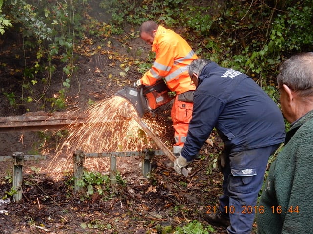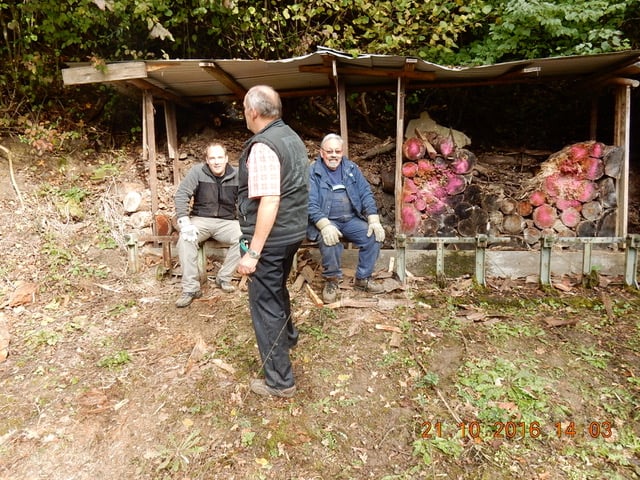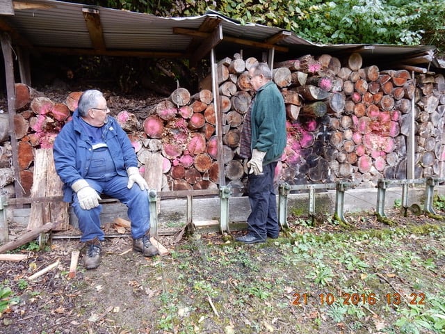 Da die arbeitenden Kollegen von hinten weniger fotogen waren, sind sie eben sitzend von vorne abgelichtet. Hans hat trotz falscher Handschuhe bewiesen, dass er auch zwei rechte Hände hat und entsprechend zugreifen konnte.