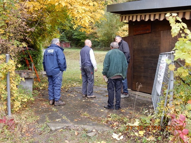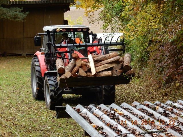 Nach dem Endschiessen wurden die ersten Arbeiten für den neuen Kugelfang angegangen. Mit der grosszügigen Hilfe der Gemeinde Schleitheim, die uns die Kosten für die Entsorgung der zerschossenen Holzbeige abnahm und erst noch mit zwei kräftigen Männern, dem Frontlader-Traktor und der schweren Flex beim Abräumen half, ging die Arbeit zügig voran. Am Abend war alles Holz sortiert in Mulden und das schwere Eisen zerteilt zum Abtransport parat.