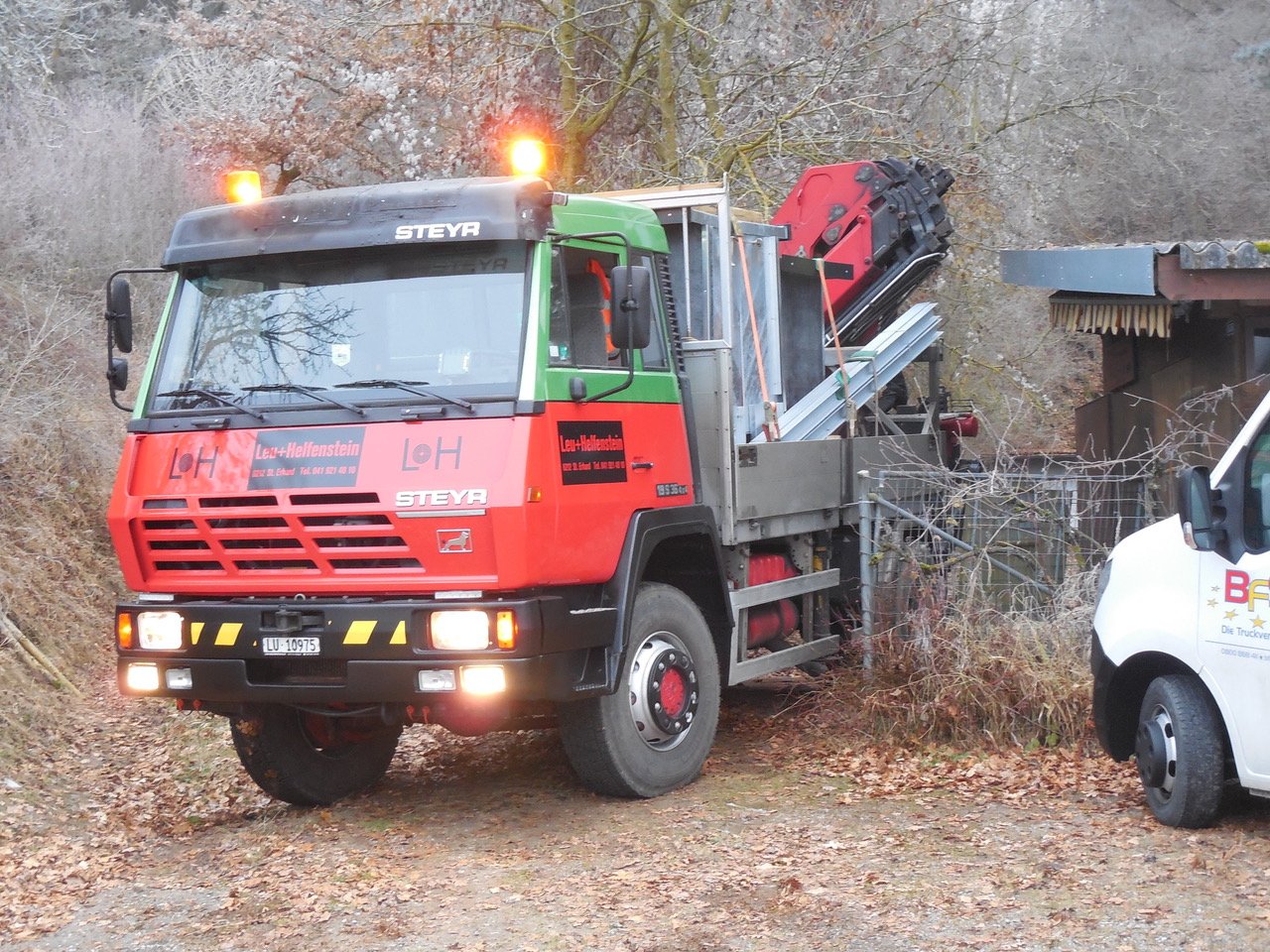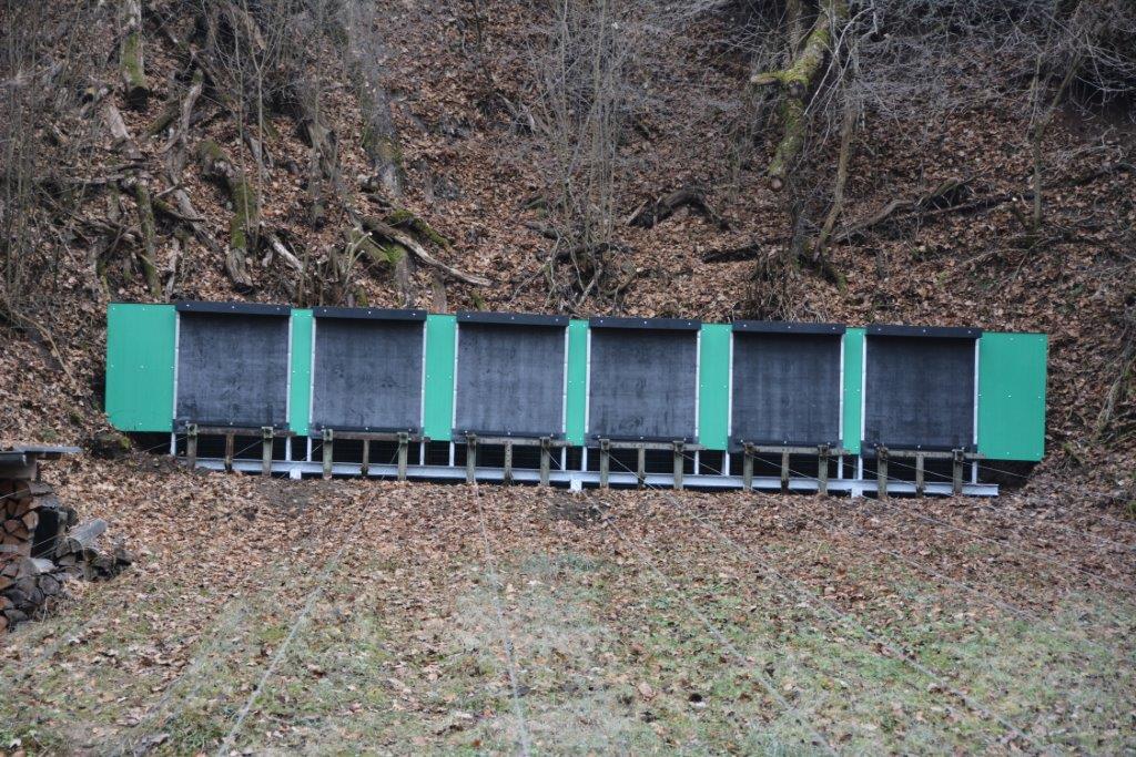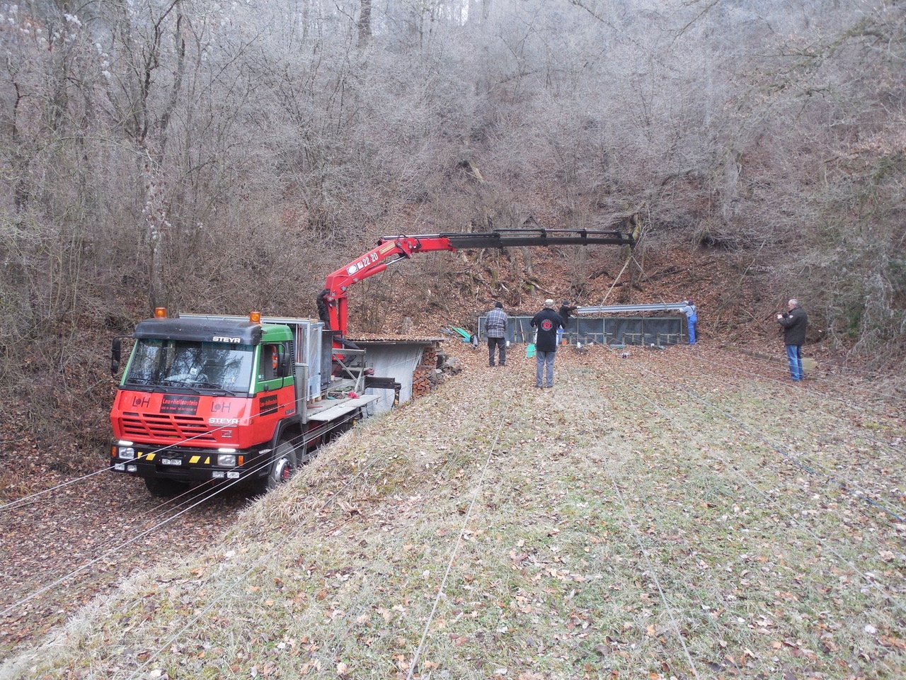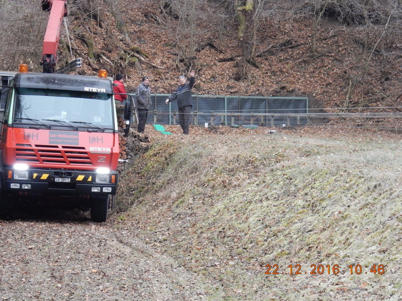 Am 22. Dezember brachte die Firma Leu & Helfenstein die 6 Kugelfangkästen mit allem Beigemüse auf einem frisch gespritzten LKW mit weitreichendem Kran.