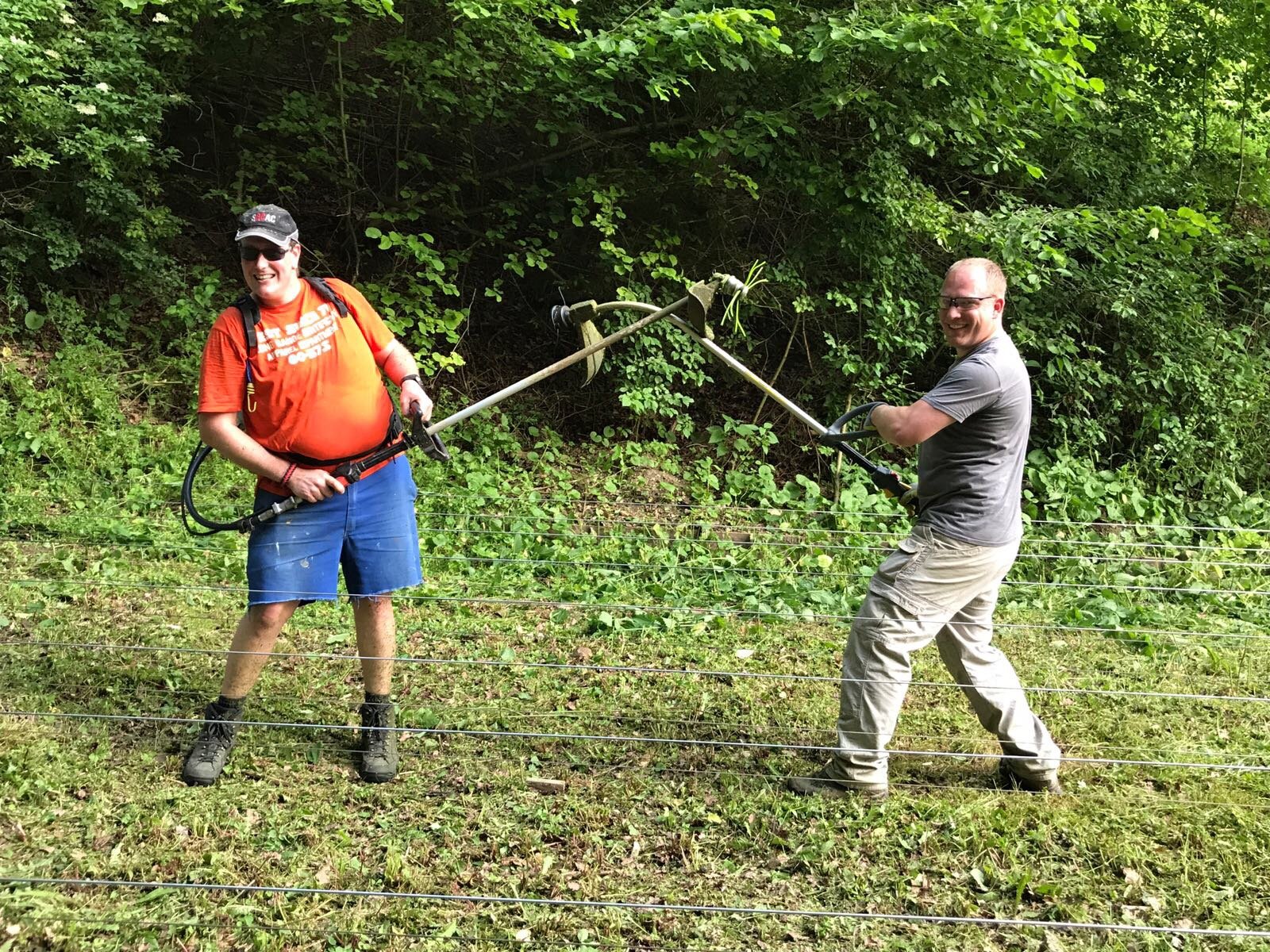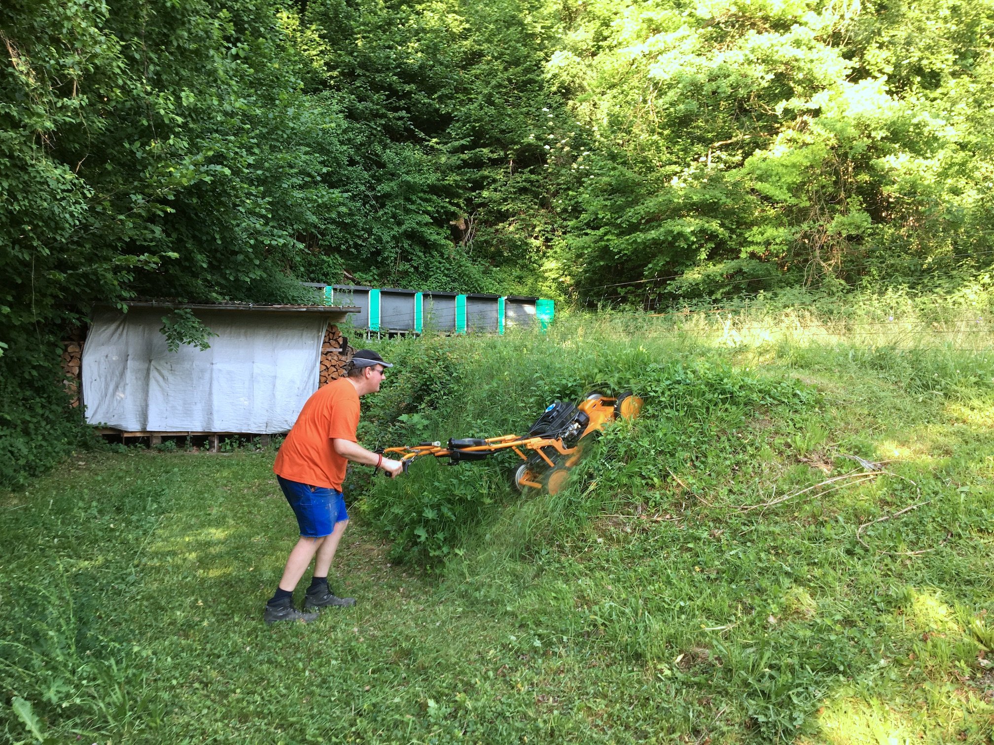 Mit schwerem Gerät wurde der Kampf angegangen und siegreich beendet. Einzig die Brennnesseln haben nennenswerten Widerstand geleistet, konnten aber nach einem Flankenmanöver mit dem Fadenmäher ebenfalls zurückgeworfen werden.