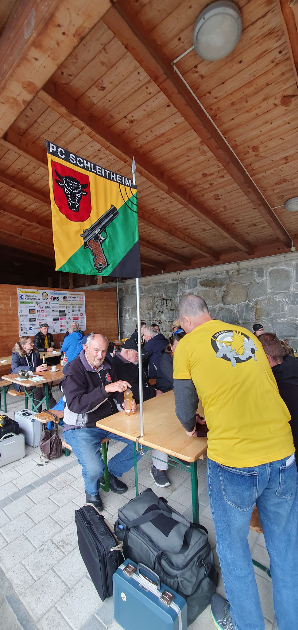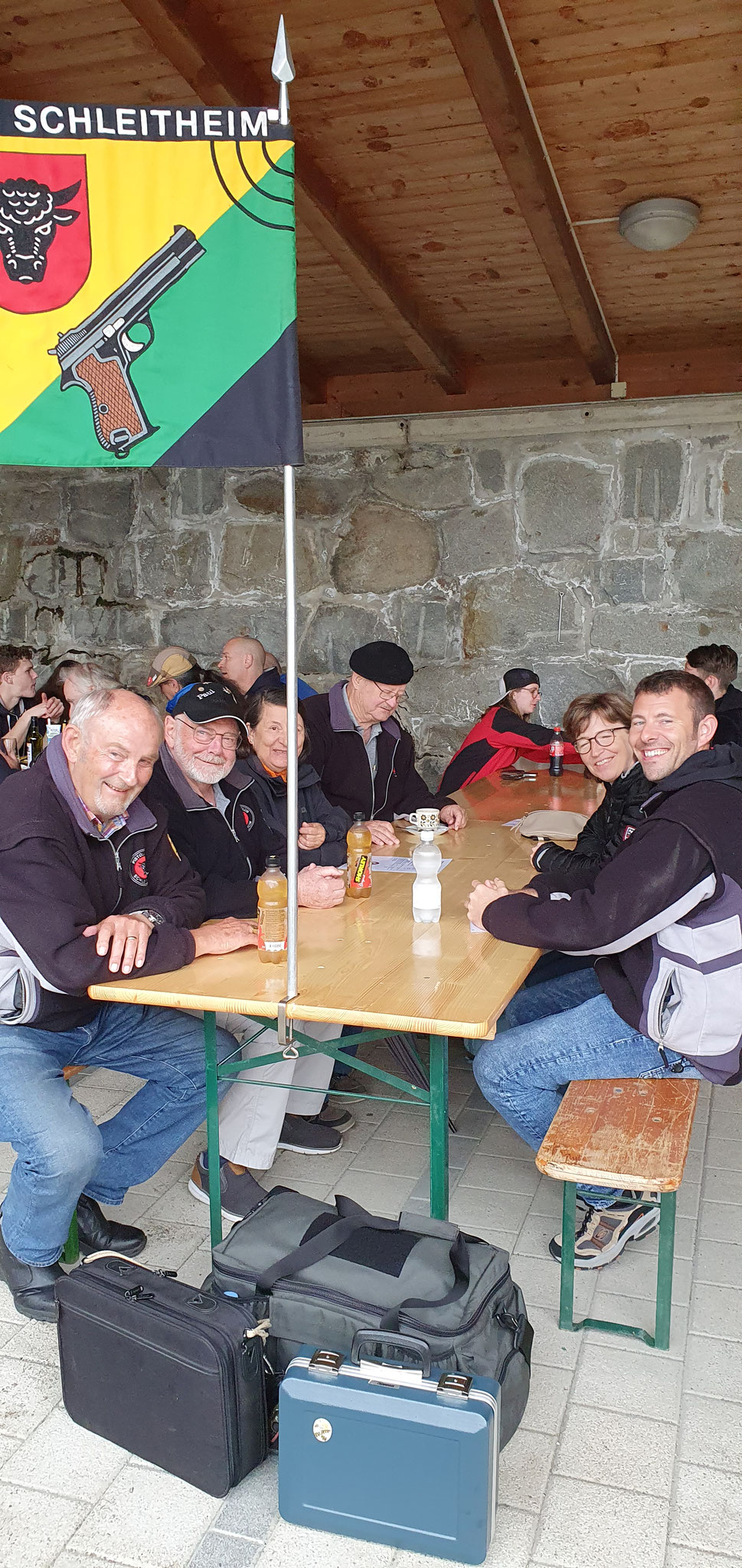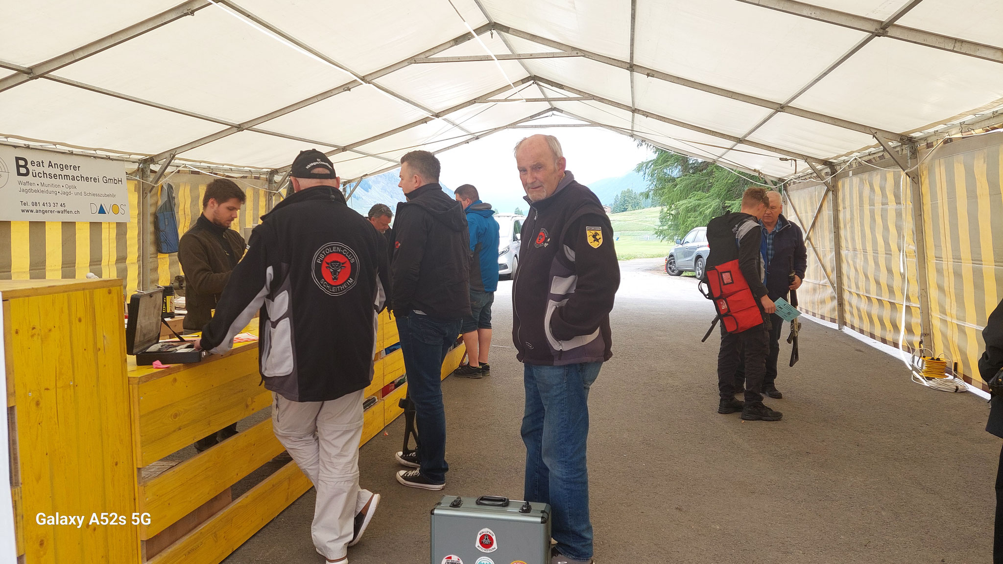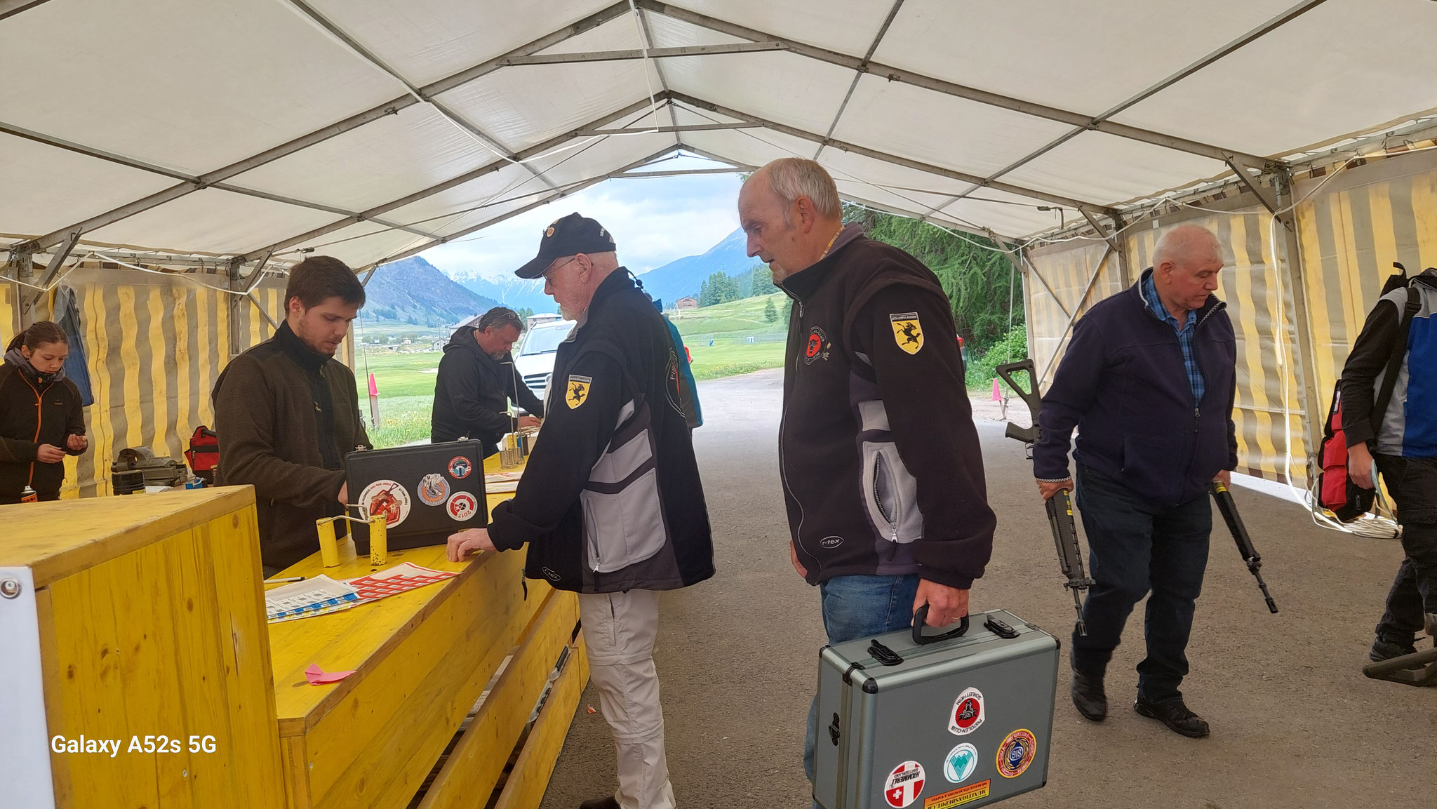Gutgelaunt fuhren fünf Pistolenschützenmitglieder aus Schleitheim in Begleitung von zwei Ehefrauen am Freitag mit dem Auto Richtung Bündnerland, über den Flüelapass nach Zuoz ins Festzentrum zur Kontrolle ihrer Sportpistolen. Nach einer kurzen Stärkung nahmen sie den nächsten Pass in Angriff. Es ging über den Bernina, welcher dicht in Wolken gehüllt war. Am späten Nachmittag erreichte die Gruppe ihr Ziel: Poschiavo im Puschlav, wo sie im Hotel Croce Bianca ihre Zimmer bezogen. Stilvoll wurde im Hotel ein mehrgängiges Menü eingenommen und die Gespräche drehten sich naturgemäss um die morgigen Wettkämpfe. Nach einem Spaziergang durch das pittoreske Dorf, mit seinen historischen Häusern, verwinkelten Gassen und wunderschönen Gärten, nahm die Gruppe noch einen Schlummertrunk, bevor sie sich am nächsten Morgen wieder am reichhaltigen Frühstücksbuffet trafen.