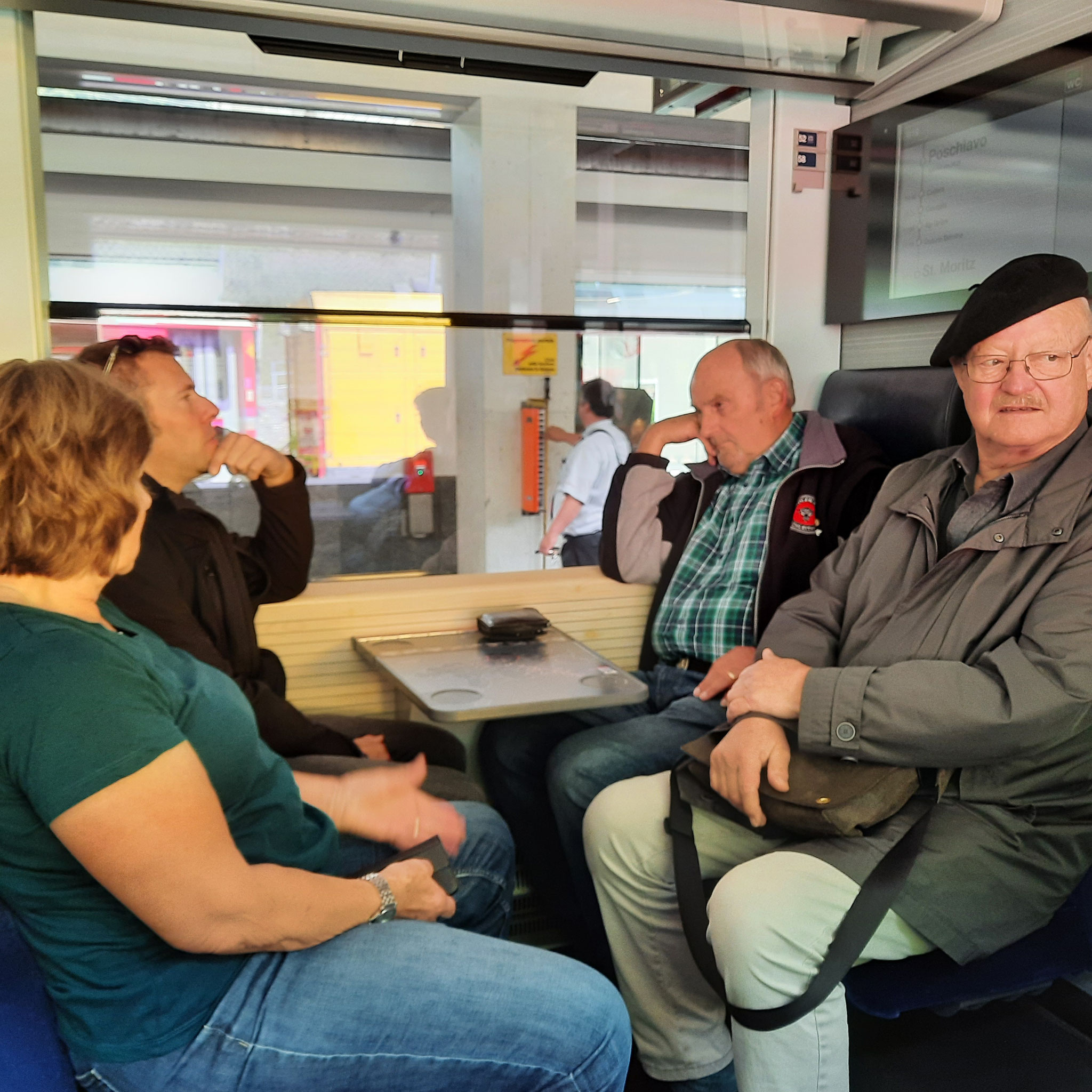 Bald schon machten sich die Schützen auf den Weg nach Campascio im untersten Teil des Puschlavs und stellten sich mit ihren Sportgeräten in den Schützenstand zu ihren Wettkämpfen, da hiess es Ruhe bewahren, gut anvisieren und langsam abdrücken, damit die Schüsse nach Möglichkeit ins Schwarze trafen, was allen vom Pistolenclub Schleitheim gelang. Jeder hatte mindestens ein Kranzresultat geschossen. Gutgelaunt, stärkte sich die Gruppe, denn am Sonntag war ein Ausflug angesagt. Mit der Rhätischen Bahn ging es über viele Kehren hinauf auf die Alp Grüm, wo sich die Sonne zeigte und den Blick auf den Palügletscher und See freigaben, sowie hinunter ins malerische Puschlavtal. Danach fuhren sie wieder gemütlich im Zug bis Tirano in Italien und nach einem kurzen Halt wieder zurück auf der spektakulären Zugstrecke. Am Montag hiess es dann Abschiednehmen und es ging hinauf auf den Berninapass, diesmal mit prächtiger Sicht auf den mit Eisschollen bedeckten Stausee. Im Festzentrum in Zuoz konnten die Mitglieder stolz ihre Kranzabzeichen in Empfang nehmen. Ueli Looser (Präsident) und Hans-Eugen Meyer (Schützenmeister) chauffierten die Übrigen sicher und entspannt über die kurvigen Alpenpässe und kleinen schmucken Dörfer und haben zusammen mit Paul Dill diese Schützenreise bestens organisiert und es wird allen in bester Erinnerung bleiben. (AW)
