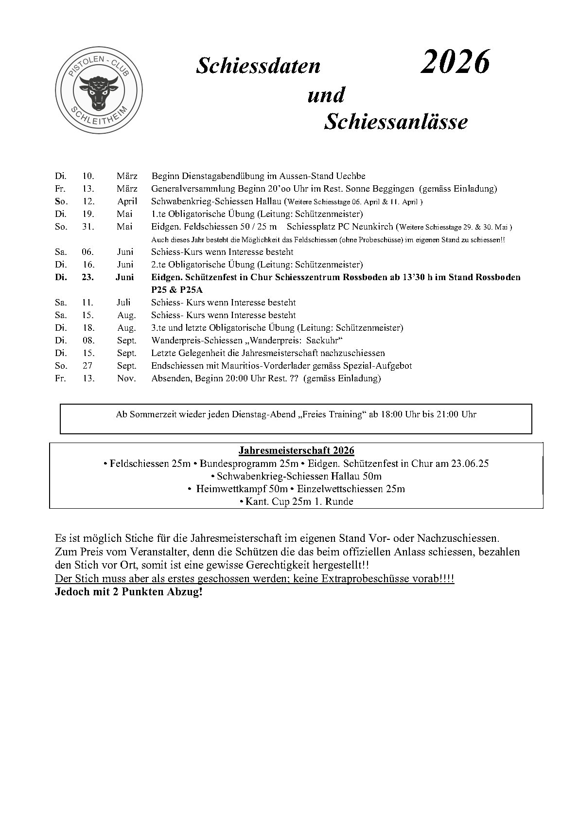Anstehende Veranstaltungen Mai 19 18:00 – 21:00 1. Obligatorische Übung Mai 31 Ganztägig Eidg. Feldschiessen Juni 6 Ganztägig Anfänger Schiesskurs (provisorisch) Juni 16 18:00 – 21:00 2. Obligatorische Übung Juni 23 Ganztägig Eidg. Schützenfest Chur Kalenderansicht